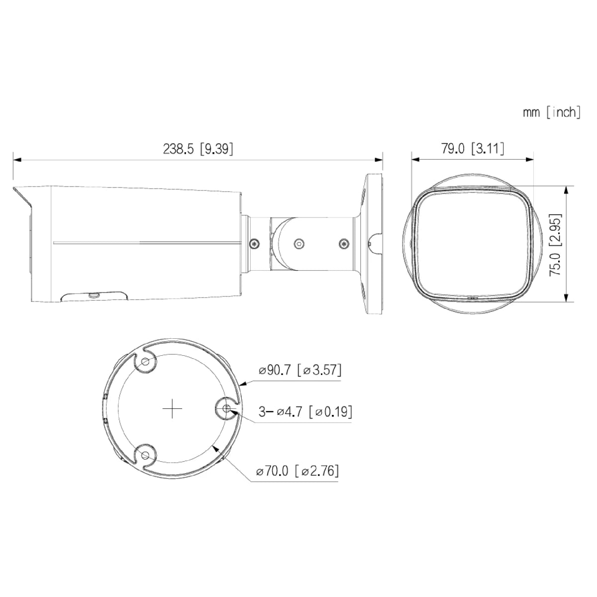 238,5 mm × 90,7 mm × 90,7 mm (9,39" × 3,57" × 3,57") (L × B × H) |